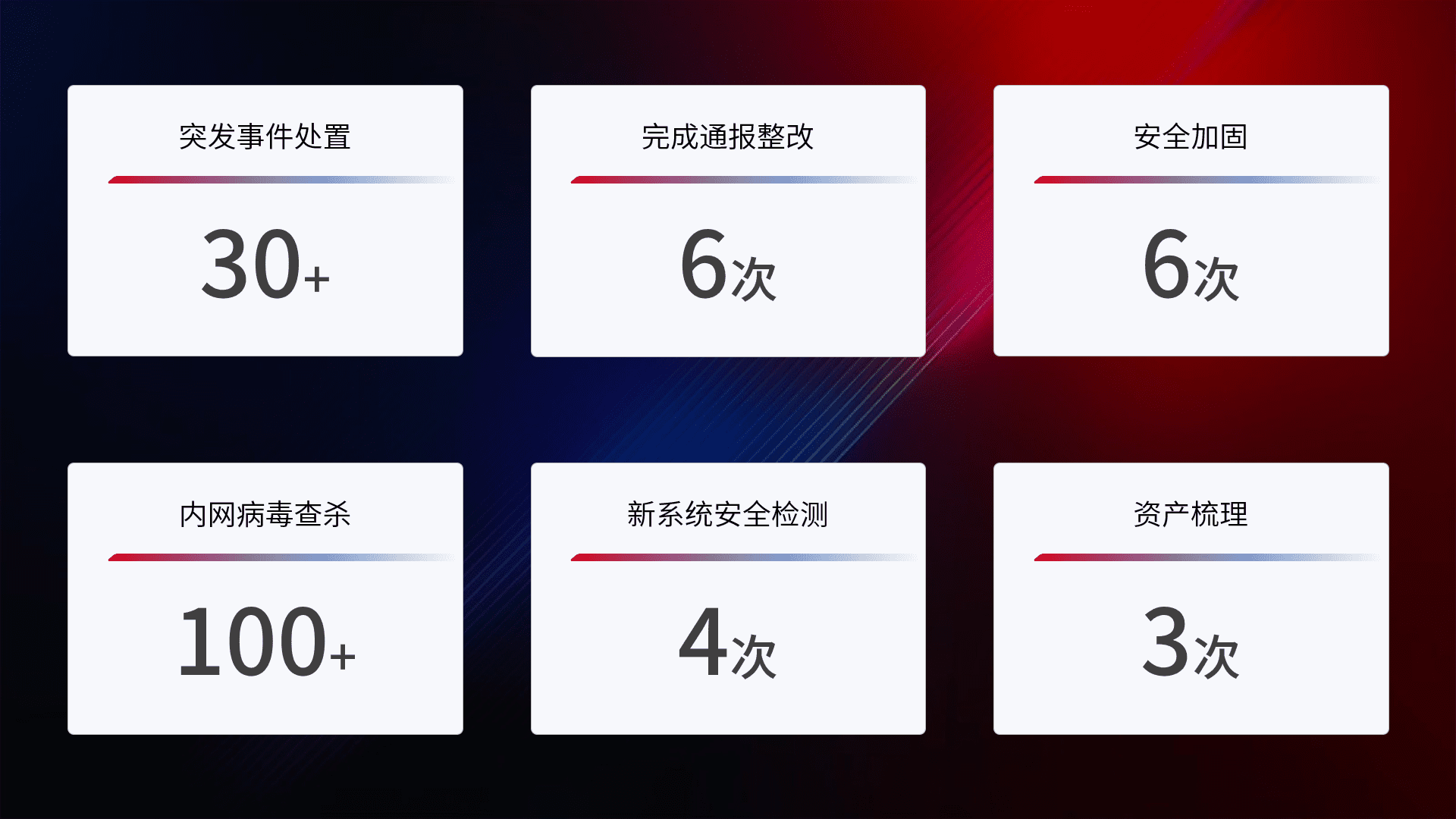 网络安全加固与风险管理:通过技术加固手段,,,,如加强区域隔离,,缩减攻击内网横向移动的范围;优化现有网络安全管理制度,,,降低网络威胁暴露面,,,减少被黑客攻击的可能性。。。
